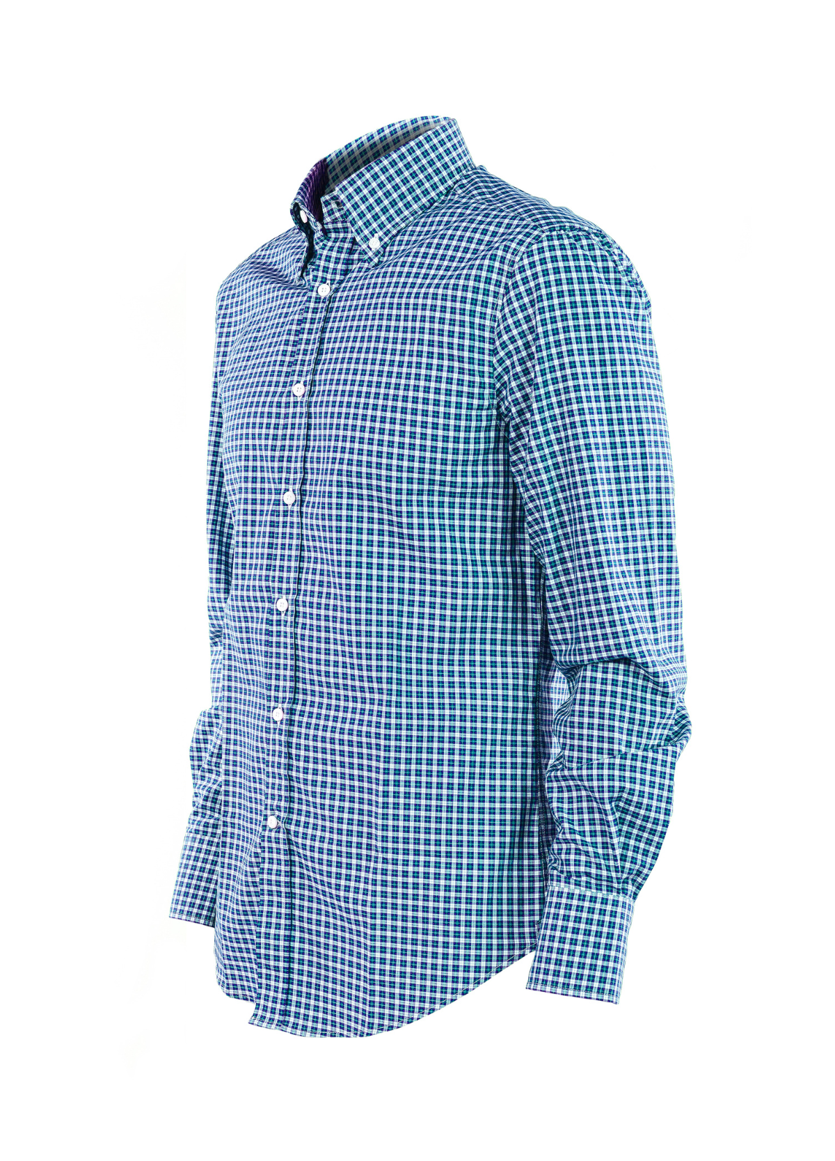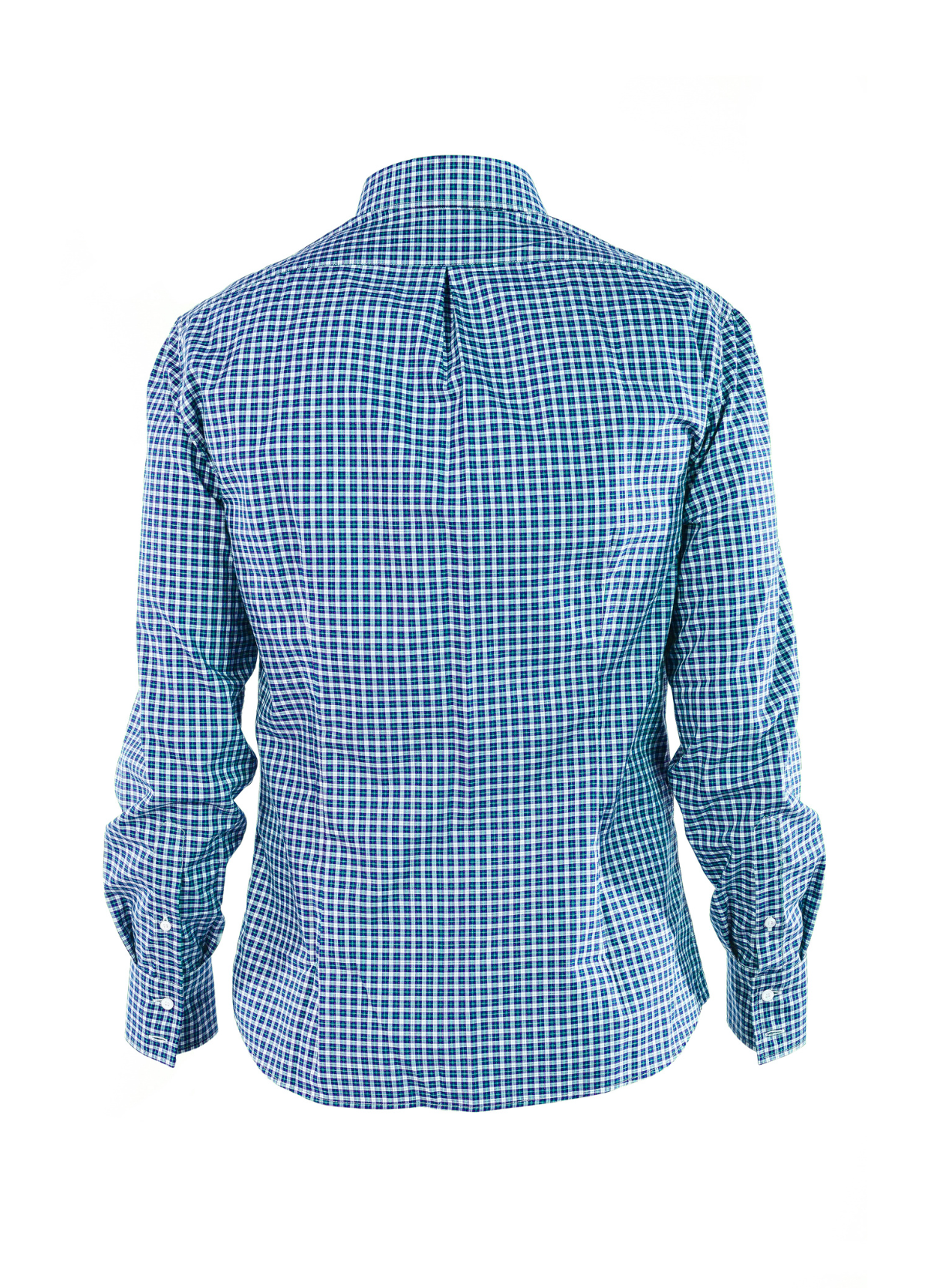 Chemise en coton à carreaux bleus, gris et verts, alliant décontraction et style. Coupe droite, facile à porter sur un jean ou sous une veste pour un look casual chic.