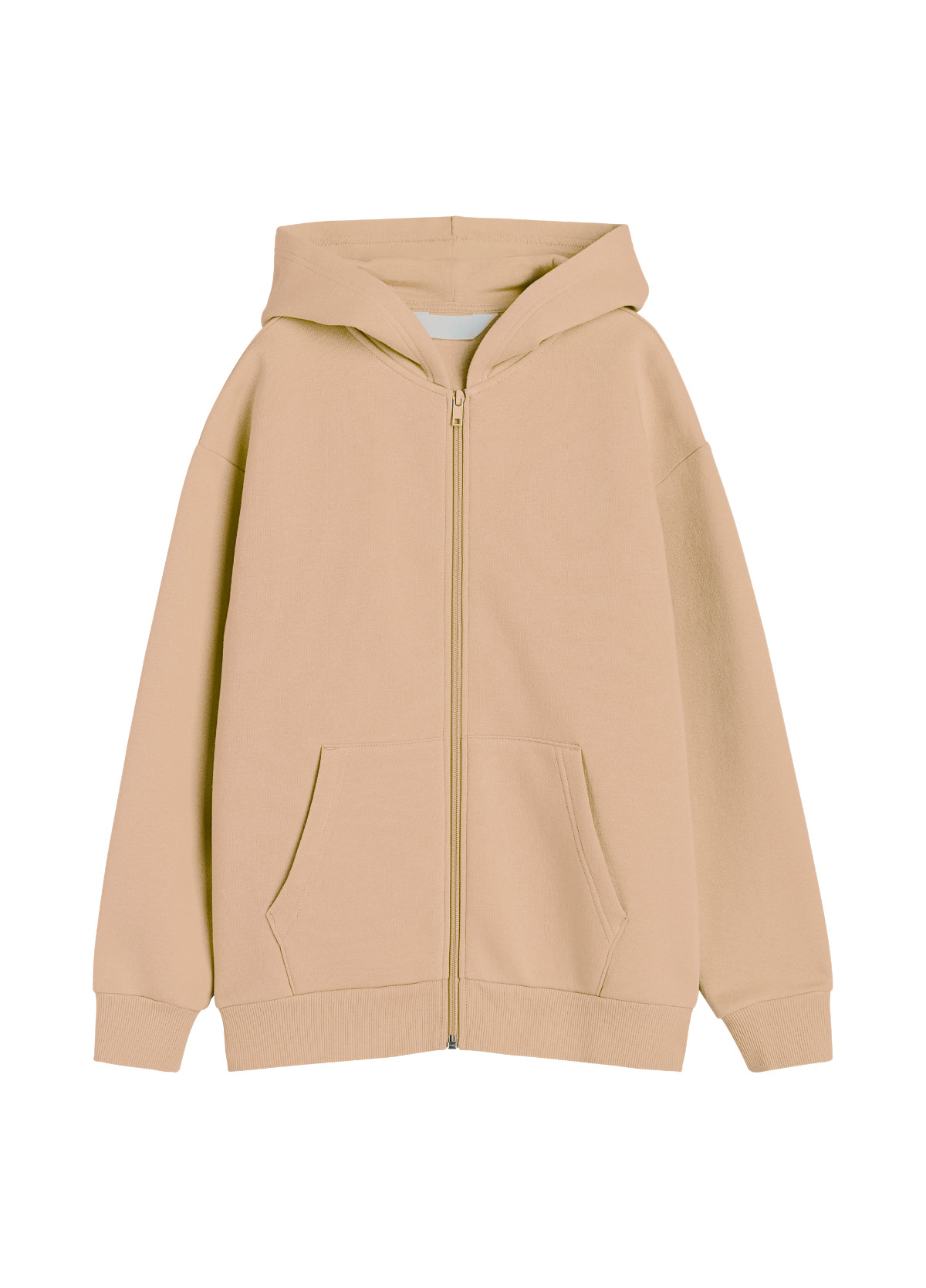 Ce sweat à fermeture éclair allie confort et sobriété. Il est coupé droit, sans capuche, avec des finitions propres et une poche kangourou discrète. Idéal en superposition. Fabriqué au Portugal dans un coton molletonné bio tout doux.